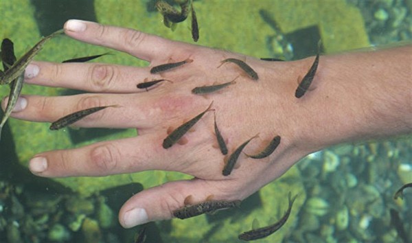 Tahriş olmuş durumdaki veya herhangi bir enfeksiyondan oluşmuş cilt dokusundaki yaraları; egzama, cerahatli sivilceler ve hatta tıpta tedavisinin imkansız olduğu bilinen “Sedef” hastalığı gibi cilt hastalıkları 2 – 10 cm. büyüklüğündeki Cyprinide (Sazangiller) familyasından Cyprinion Macrostamus (Beni Balığı) ve Garra rufa (Yağlı Balık) türündeki balıklar tarafından iyileştirilmekte ve izleri kaybolmaktadır.
